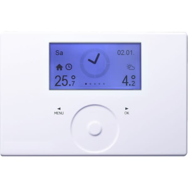 Couplage de données par bus systèmeCommande à distance avec fonction thermostat pour le gestionnaire de pompe à chaleur WPMUtilisable pour chacun des 5 circuits de chauffage du système WPMÉcran graphique rétro-éclairé