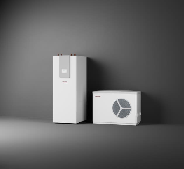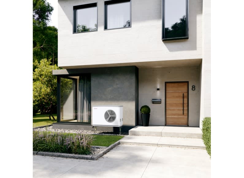 La pompe à chaleur air-eau pour le chauffage et le refroidissement est installée en extérieurLa technologie d’inverter permet une adaptation optimale de la puissance de chauffe grâce au compresseur à variation de vitesse