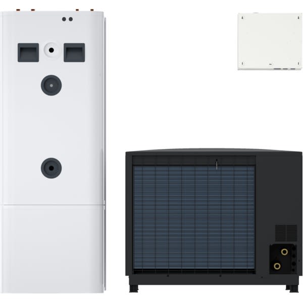 Pompe à chaleur air/eau monobloc à modulation de puissance 7 kW R290 Réversible Monophasée 43 dB(A) Température de départ jusqu'à 75°C Pour le neuf ou la réno avec tour hydraulique HSBC 300 cool (ballon tampon 100 litres + ECS 270 litres)