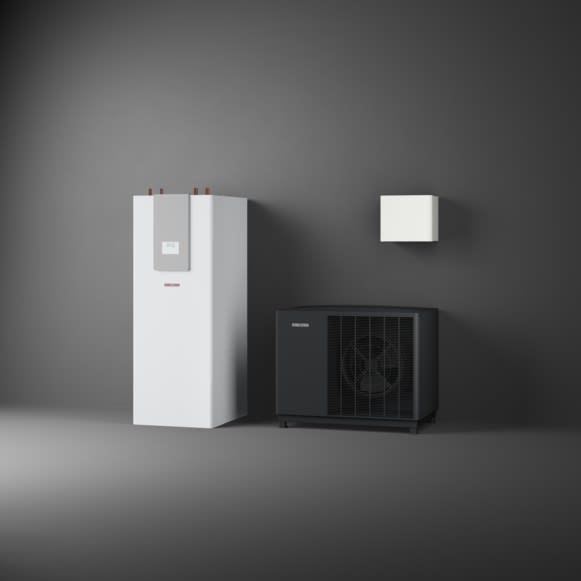 Pompe à chaleur air/eau monobloc à modulation de puissance 10 kW R290 Réversible Monophasée 48 dB(A) Température de départ jusqu'à 75°C Pour le neuf ou la réno avec tour hydraulique HSBC 300 cool (ballon tampon 100 litres + ECS 270 litres)