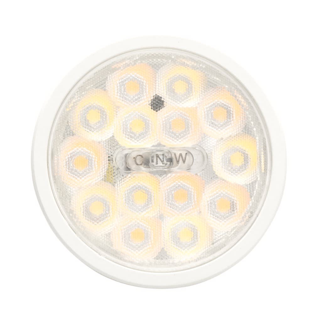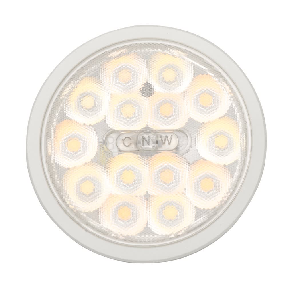 Version 6W à sélection de couleur avec 3 CCT, avec interrupteur sur la lentille de 38°, afin de sélectionner la température de couleur, avant ou même après l‘installation, entre 2700K/3200K/4000K.
