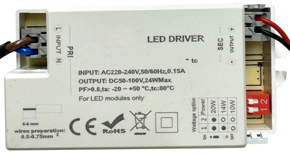Réglage du courant de sortie (3 niveaux) à l'aide de micro-interrupteurs.