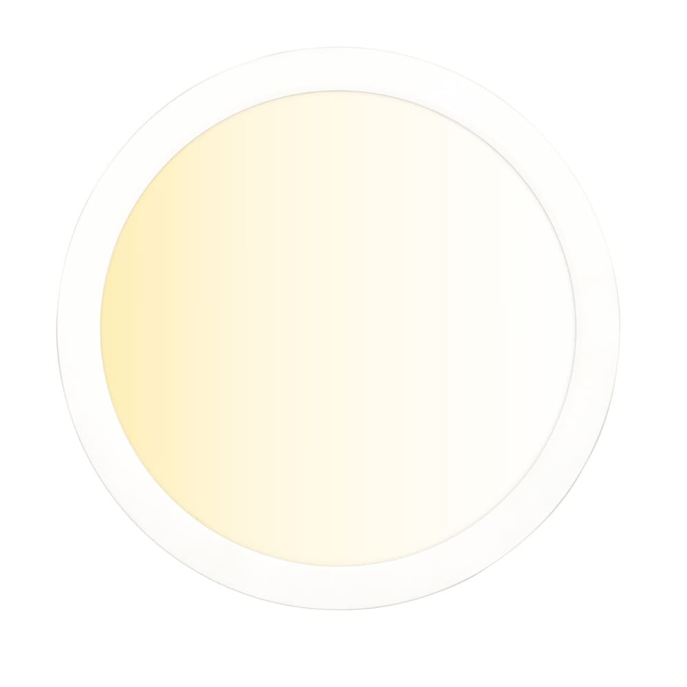 Downlight LED extra-plat, à couleur et puissance commutables, pour les installations en surface et encastrées. Un même support, pour un diamètre d'encastrement réglable entre 65 et 180mm (ou 240mm pour le plus grand diamètre), permet une installation flexible, encastrée ou en saillie. Couleur Commutable entre 3000K/4000K/6000K - sélection de la température de couleur avant l'installation. Driver LED intégré non-gradable pour une hauteur d'installation très compacte et de seulement 17mm. Il existe une version à détection HF intégrée (360° sur une distance de 8m). Le produit, dans sa version standard blanche, peut être personnalisé grâce à des collerettes magnétiques en noir et en alu brossé, vendues en accessoires.
