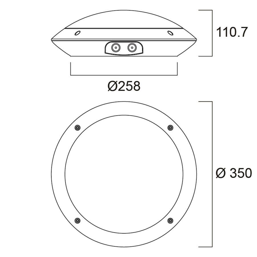 Gamme de hublots IP66 pour l'éclairage extérieur résidentiel ou commercial. Multipower avec choix de flux de 860 à 2800lm avec une efficacité pouvant atteindre 128lm/W. Température de couleur : 3000K, IRC>80. Durée de vie version standard (L80) : 100.000h. IP66, IK10 livré avec vis anti-vandal.