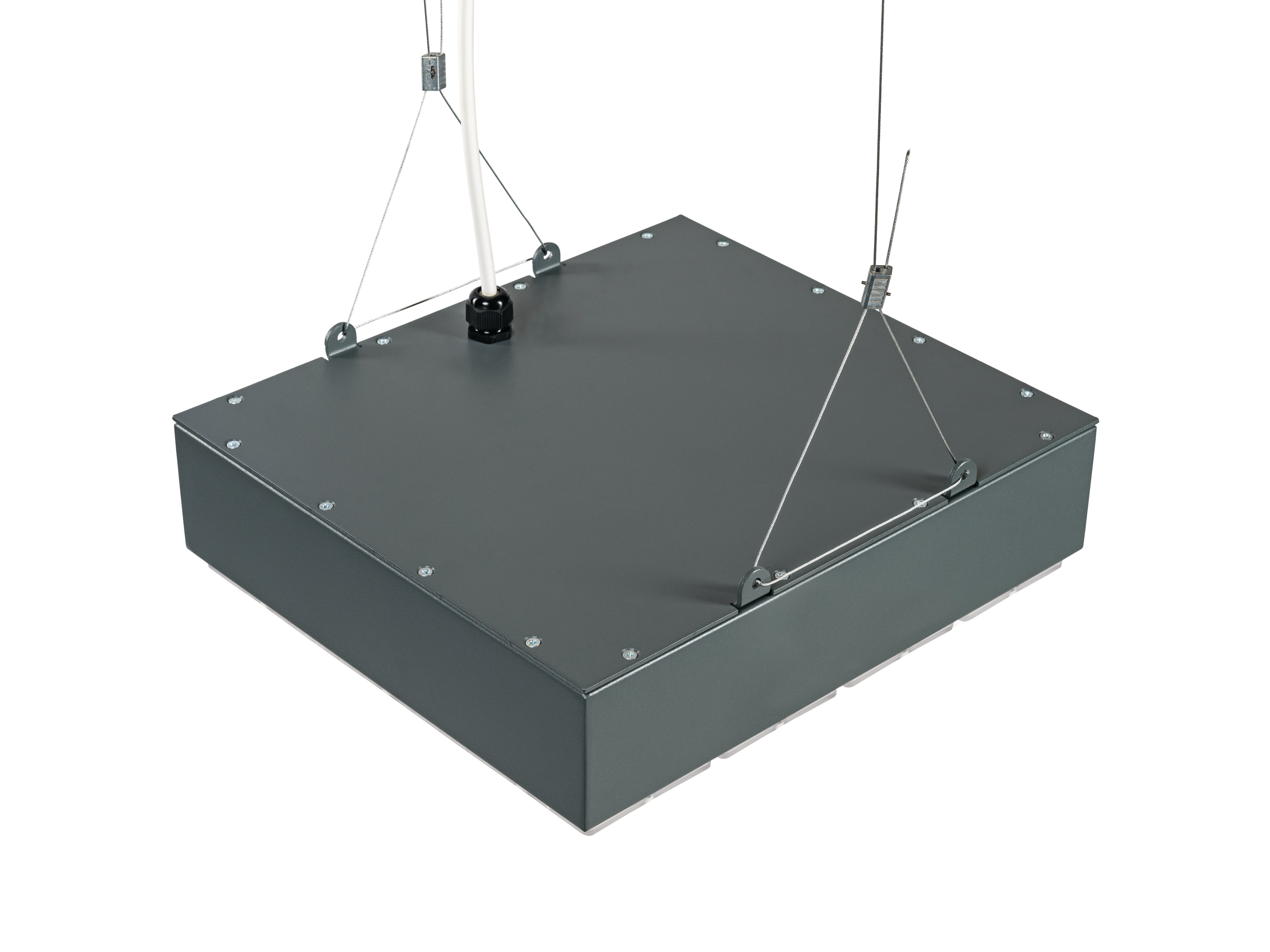 KubiXx IP65 L4 110W 19000lm 840 Large DALI - Armature industrielle LED haute efficacité destinée à l'éclairage de grande hauteur. Corps acier. Température de couleur (CCT) 4000K. IRC>80. Distribution lumineuse à 75°. Flux lumineux sortant 19300lm. Puissance consommée 110W. Efficacité lumineuse 175lm/W. Facteur de puissance 0,98. Maintien du flux de L80: 95.000h. Gestion DALI. Groupe de risque photobiologique GR1. IP65. IK06. Classe I. Compatible régimes de neutre IT, TT et TN. 850°C. Température de fonctionnement de -40°C à +50°C. Taux de distorsion harmonique : <8% (à 230V, 50Hz, à 100% max du taux de gradation). SDCM:3. Marquage D pour environnement inflammable. Dimensions (LxlxH) : 370x330x94mm. Poids: 4,9kg. Garantie de 5 ans. Sylvania est signataire de la charte LED. Produit éligible CEE.
