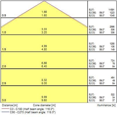 faible éblouissement selon EN 12464-1 (UGR Inf. à 19):