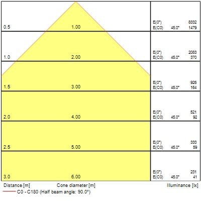 faible éblouissement selon EN 12464-1 (UGR Inf. à 19):