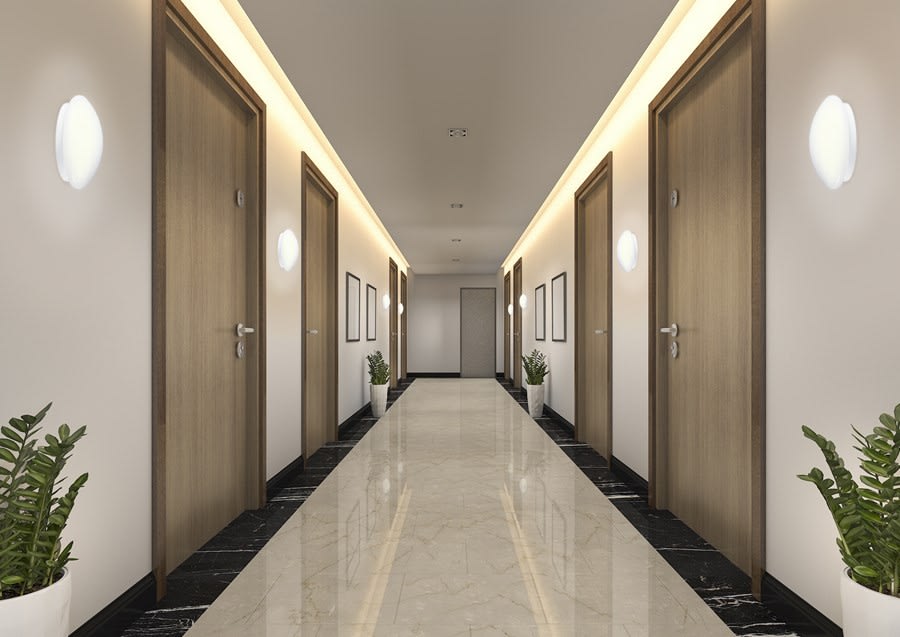 Gamme de hublots. Existe en diamètre 180, 250, 330 et 360mm. Peut être installé au mur et au plafond. Haute efficacité jusqu'à 86 lumen/watt. Double température de couleur, 3000 et 4000K. Existe avec capteur à micro-ondes permettant un contrôle automatique de l'allumage. Durée de vie de 30000 h. Garantie 3 ans Flux : jusqu'à 2050lm. Efficacité : jusqu'à 86 lm/W. Dble température de couleur, 3000 & 4000K. RG0. IK03. T° de fonctionnement de -20°C à 40°C. Connecteur rapide et repiquable intégré (LiLo). Durée de vie (L70) : 30.000h. Garantie 3 ans. START eco Surface IP44 12W 1025lm 830/840. Gamme de hublots disponibles en 6W, 12W, 18W et 24W et diamètres 180, 250, 330 et 360mm. Peut être installé au mur et au plafond. Versions avec capteur hyper-fréquence (MW) pour plus d'économies.