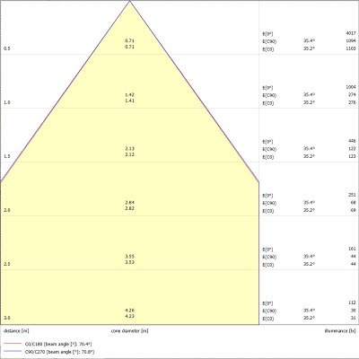 faible éblouissement selon EN 12464-1 (UGR Inf. à 19):