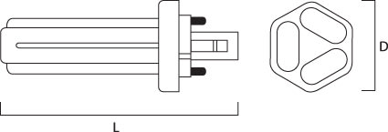 Lampe fluo-compacte à économie d'énergie. Alimentation séparée - starter intégré. Efficacité lumineuse élevée, très bon rendu des couleurs (IRC 80). Pour ballast ferromagnétique. Durée de vie moyenne : 15.000 heures. 16W = 1210lm. 26W - 1800lm.