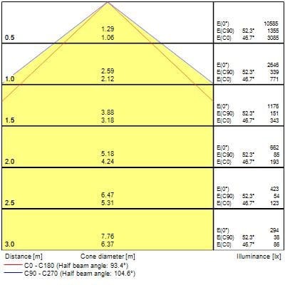 faible éblouissement selon EN 12464-1 (UGR Inf. à 19):