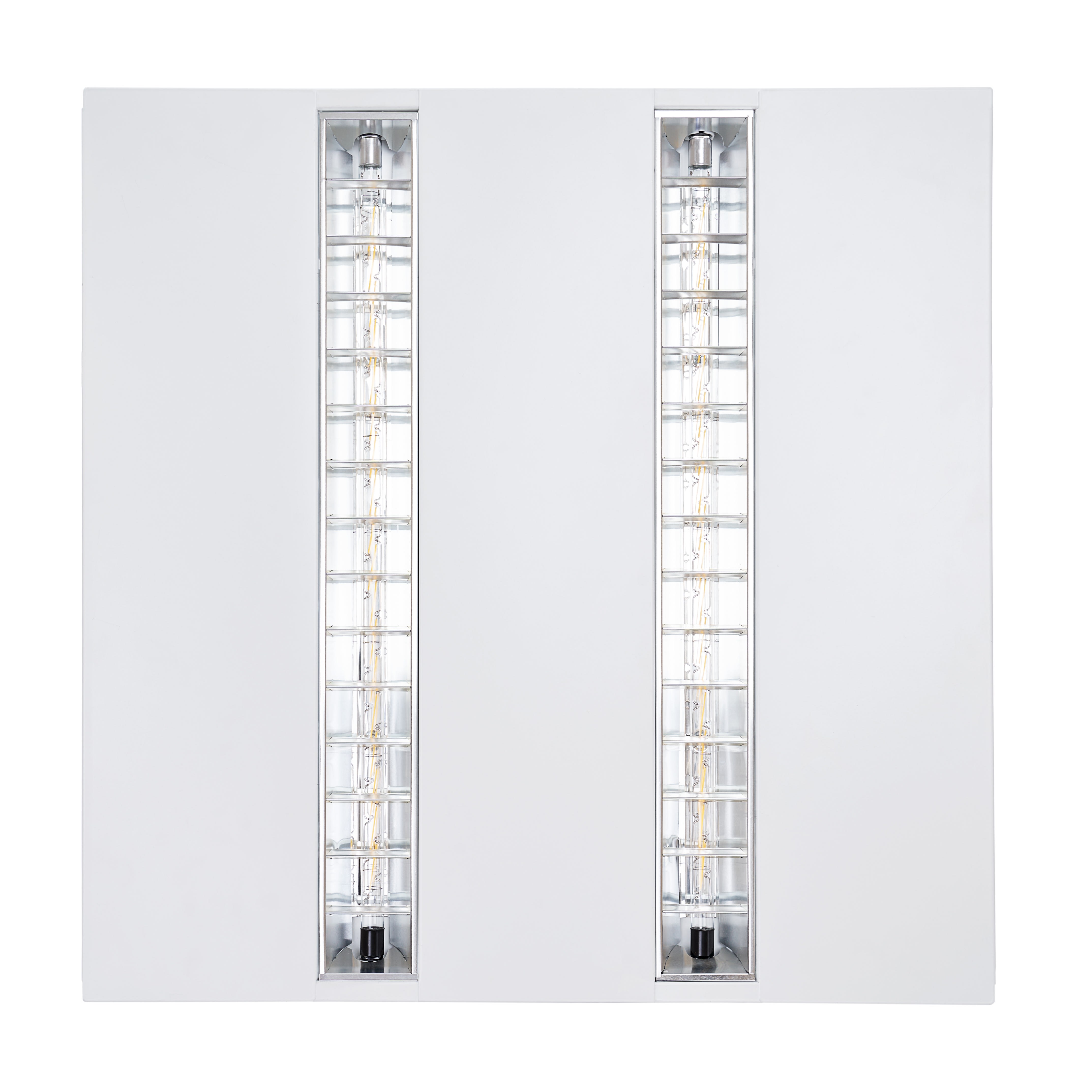 Gamme de luminaires encastrés éco-responsables équipés de 3 tubes LED Helios T5 remplaçables pour une maintenance facilitée. Applications tertiaires. Tubes à commander séparément. Puissance consommée : 31W. Flux lumineux 4500lm environ (selon les tubes installés). UGR<19. GR1.