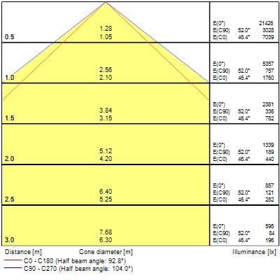 faible éblouissement selon EN 12464-1 (UGR Inf. à 19):