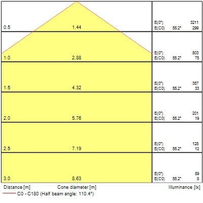 faible éblouissement selon EN 12464-1 (UGR Inf. à 19):
