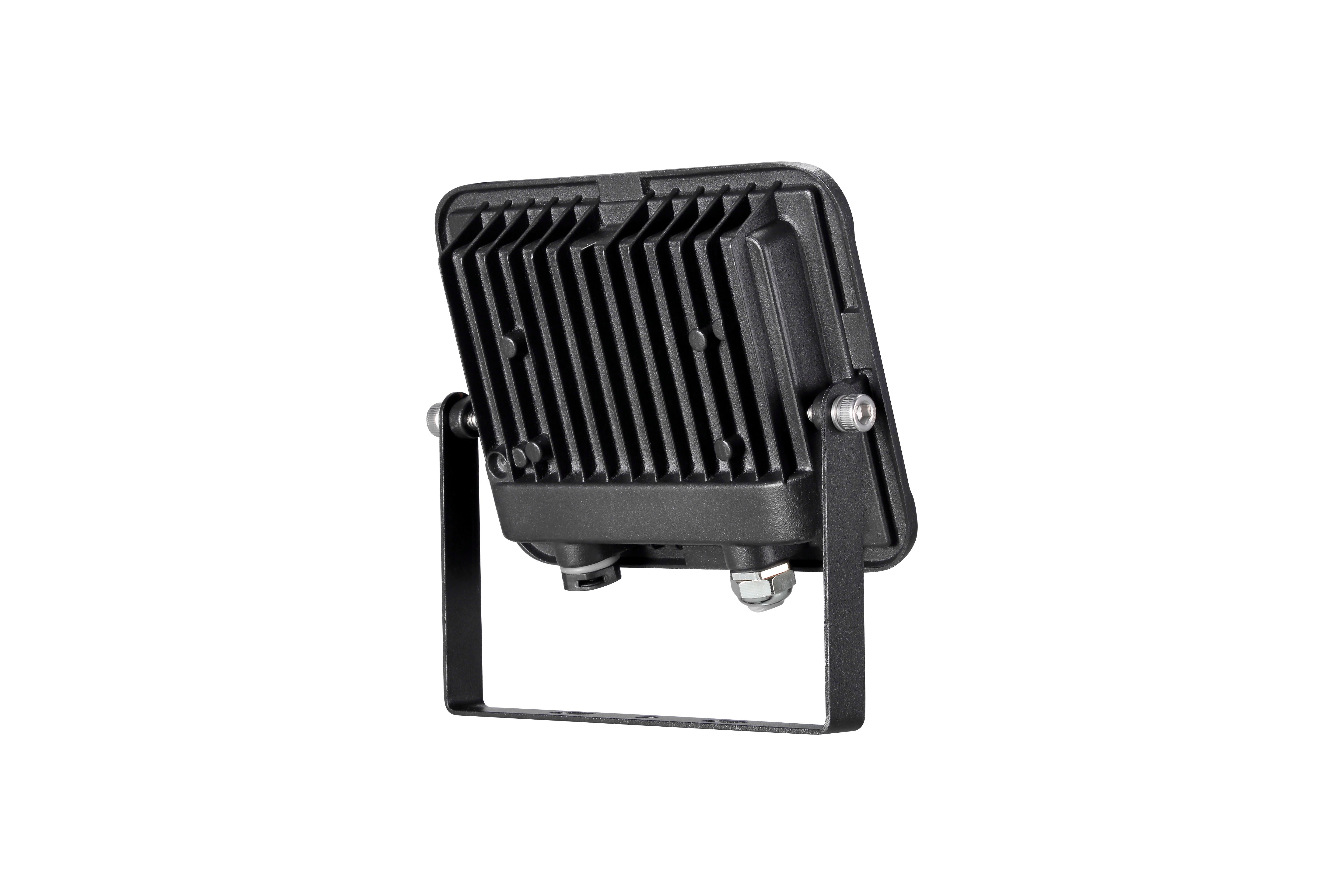 Gamme de projecteurs LED extérieurs extra-plats avec ou sans capteur PIR. Corps en fonte d'aluminium moulé robuste et léger. Pose simple et rapide en applique ou en saillie grâce à l'étrier et au précâblage (1 m) prévus. Flux lumineux jusqu'à 10.000lm (version PIR jusqu'à 5.000lm) pour 137 lm/W d'efficacité. Flux : jusqu'à 10.000lm & 137 lm/W d'efficacité. Disponible en 3000K et 4000K, blanc et noir. Versions IK06 et IK07. Testé au brouillard salin 500hrs. T° de fonctionnement : -20 à +40 °C. Durée de vie (L80) : 54.000h. Garantie 3 ans. START Flood Flat IP65 27W 3000lm 840 Noir. Gamme de projecteurs extérieurs extra-plats avec ou sans capteur PIR. Corps en fonte d'aluminium moulé robuste et léger. Pose en applique ou en saillie. Étrier réglable et précâblage (1 m) inclus.