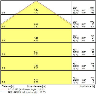 faible éblouissement selon EN 12464-1 (UGR Inf. à 19):