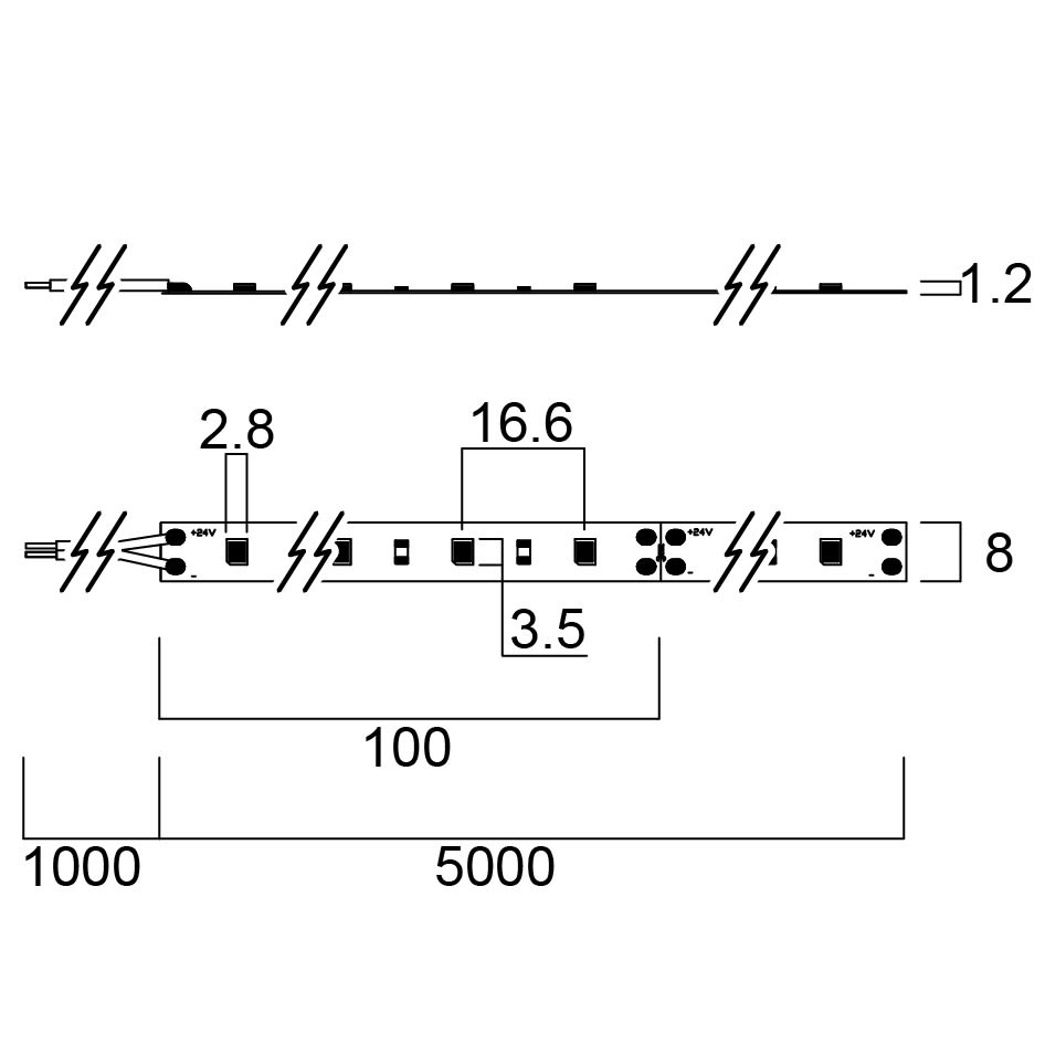 puissance de la lampe par mètre - 4.8 W