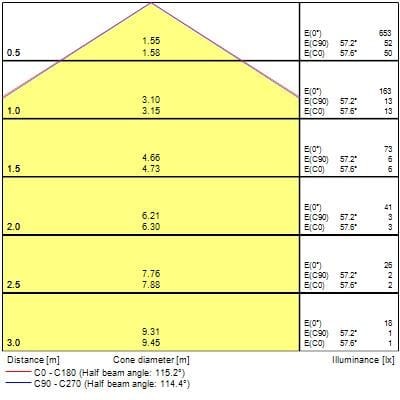 puissance de la lampe par mètre: