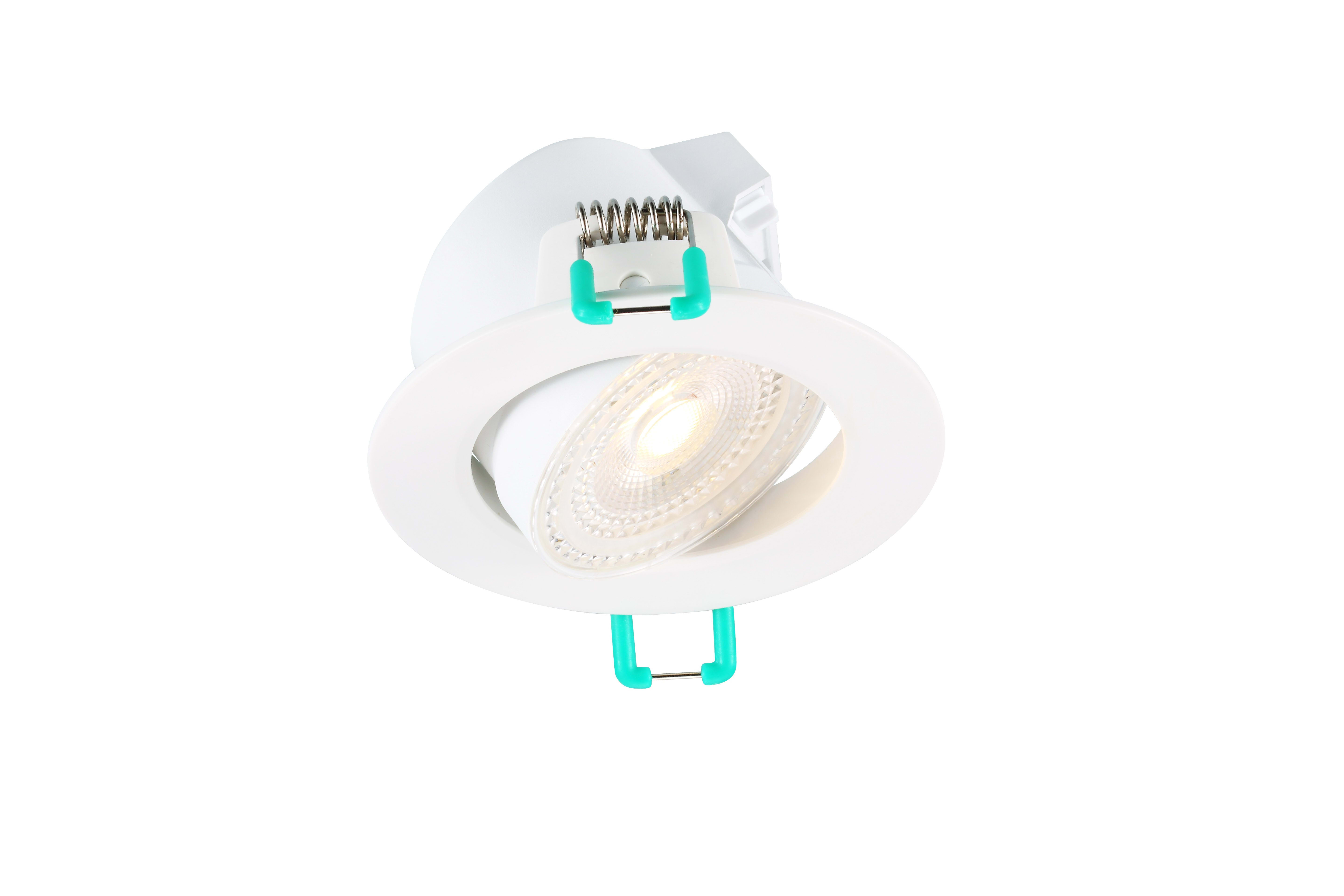 START eco Spot 5W 420lm 830 IP44 Blanc. Spot d'accentuation LED. Version IP44 orientable, faisceau 38° ou IP65 fixe, faisceau 100°. Versions dimmables ou non. Collerette blanche, inclus un anneau argenté à clipser. Boîtier de repiquage LiLo. Flux jusqu’à 600lm. Efficacité jusqu’à 96lm/W. IRC>80. 3000K ou 4000K. Diamètre d’encastrement 65 à 74 mm, hauteur 47mm. Durée de vie : 30 000 h (L70). Garantie 3 ans.