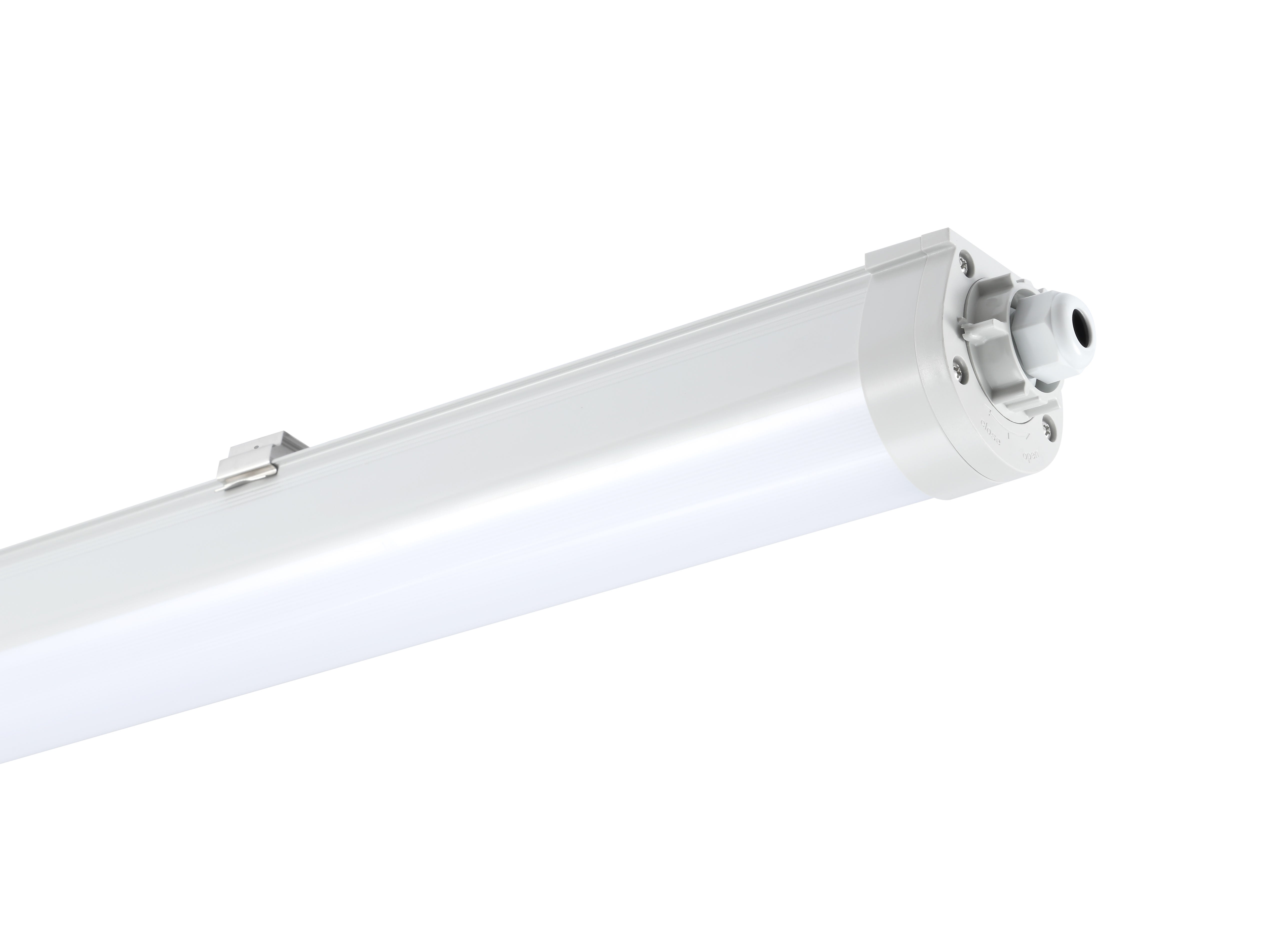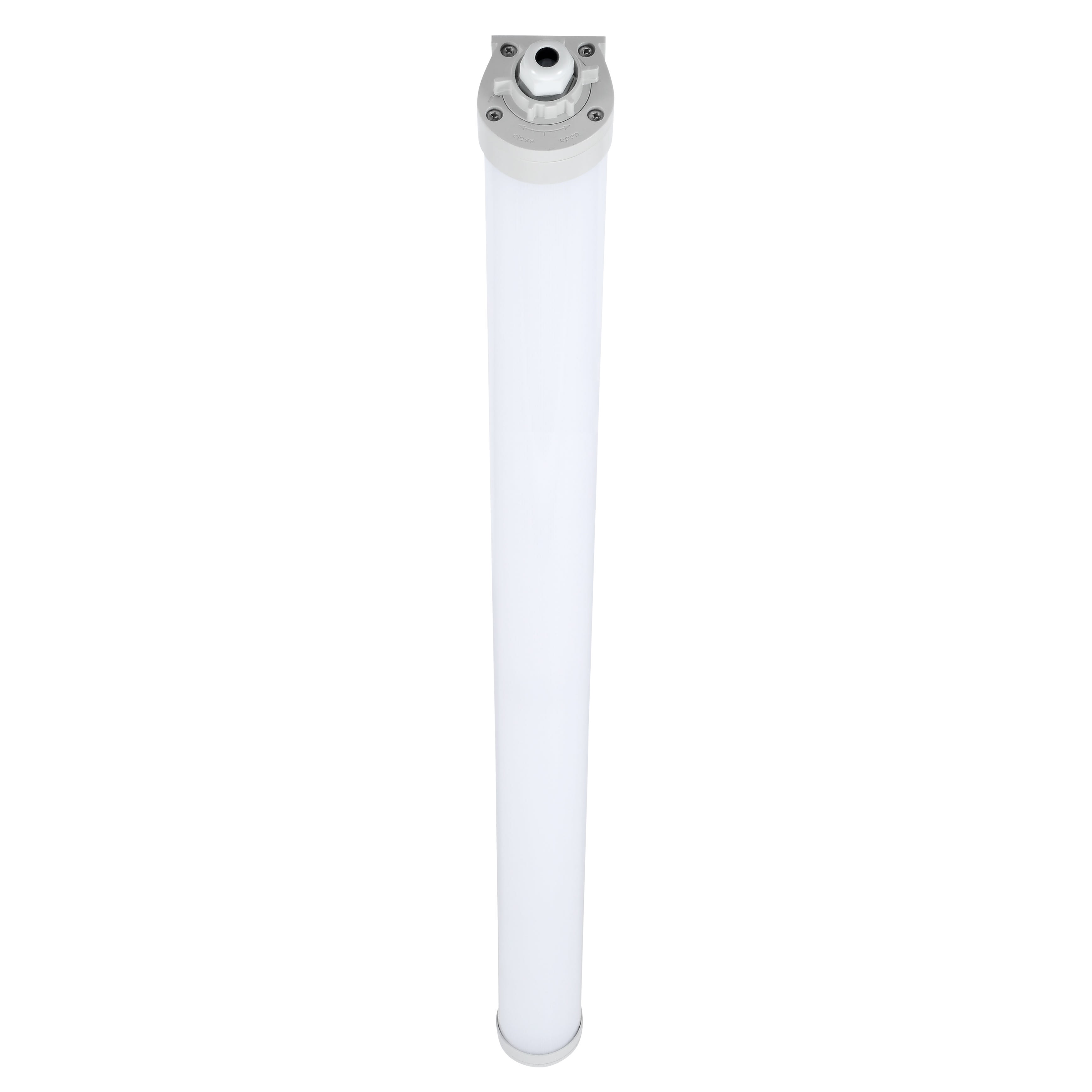 Gamme de luminaires étanches Led en polycarbonate, en 600mm, 1200mm ou 150mm. Haute efficacité jusqu'à 136lm/W. Accès facile au bornier dalimentation électrique. 4000K. Angle faisceau : 120°. Flux lumineux sortant jusqu'à 7200lm. Puissance consommée jusqu'à 53W. Durée de vie (L70)