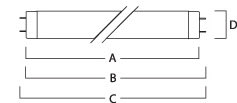 Tube T5 Haute Efficacité (HE: High Efficiency) - diamètre 16mm. T5 FHE - 14 W. 14 W = jusqu'à 1200lm