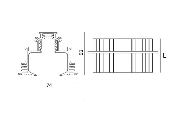 Système à 48 V à monter au plafond et en suspension, encastrement profond ou encastrement simple avec finition trimless, aussi bien au plafond qu'au mur. Il peut-être accessoirisé, à n'importe quel endroit du rail, d'appareils pour une lumière linéaire et ponctuelle grâce à un système simple de fixation mécanique. La profondeur des rails est extrêmement réduite : 25mm ou 53mm. La profondeur du nouveau rail - avec section en "H" - est de 29 mm.