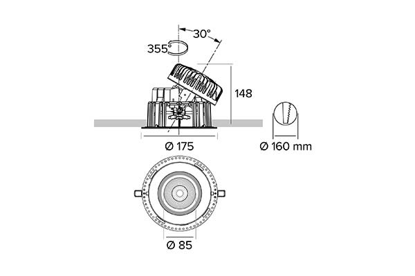 Gamme de projecteurs encastrés pour l'éclairage professionnel appartenant à la famille de CCT LED. Le système de fabrication, les dimensions et le dissipateur original sont hérités de la version downlight, le tout décliné dans une version basse luminance destinée à l'éclairage architectural professionnel qui répond aux exigences de performance, de précision et de polyvalence.