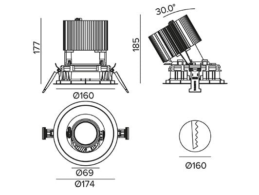 Gamme de projecteurs encastrés pour l'éclairage professionnel. De véritables instruments professionnels pour la lumière projetée, caractérisés par la flexibilité d'application, de hautes performances et la qualité de leurs systèmes optiques. Disponible en quatre tailles avec différentes puissances et quatre émissions lumineuses, la gamme CCTEVO ARCHITECTURAL se présente en deux versions : trim (avec anneau) ou trimless, de manière à s'intégrer parfaitement dans l'architecture.