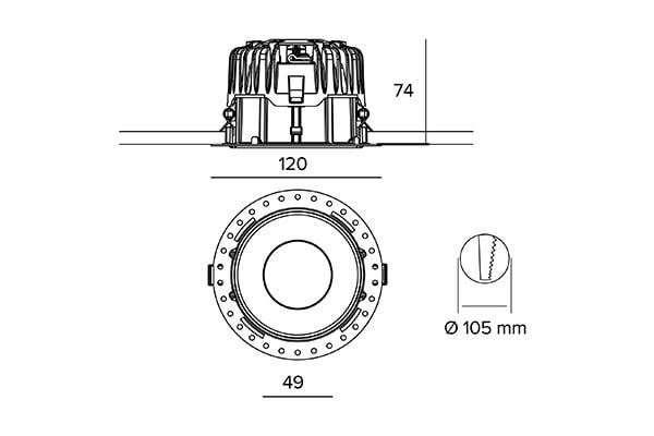 Gamme de projecteurs encastrés pour l'éclairage professionnel appartenant à la famille de CCT LED. Le système de fabrication, les dimensions et le dissipateur original sont hérités de la version downlight, le tout décliné dans une version basse luminance destinée à l'éclairage architectural professionnel qui répond aux exigences de performance, de précision et de polyvalence.