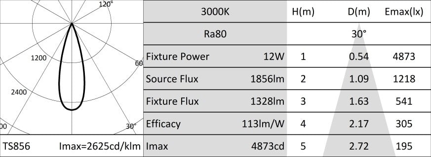 CORO ADJ PRJ 12W FL 3K LO ARM RA80 SA GR