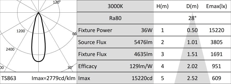 CORO ADJ PRJ 36W FL 3K SH ARM RA80 FL WH