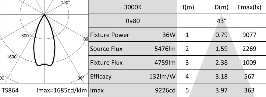 faible éblouissement selon EN 12464-1 (UGR Inf. à 19):