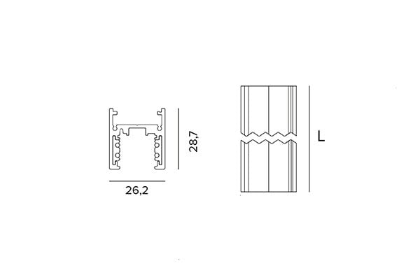 Système à 48 V à monter au plafond et en suspension, encastrement profond ou encastrement simple avec finition trimless, aussi bien au plafond qu'au mur. Il peut-être accessoirisé, à n'importe quel endroit du rail, d'appareils pour une lumière linéaire et ponctuelle grâce à un système simple de fixation mécanique. La profondeur des rails est extrêmement réduite : 25mm ou 53mm. La profondeur du nouveau rail - avec section en "H" - est de 29 mm.