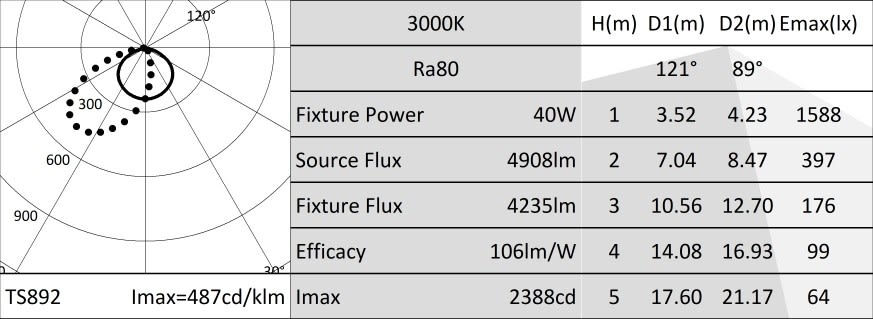 faible éblouissement selon EN 12464-1 (UGR Inf. à 19):