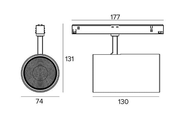 Ligne coordonnée de projecteurs pour le montage sur rail, étudiée pour l'éclairage d'intérieur ainsi que pour le secteur du Retail et de l'hôtellerie.