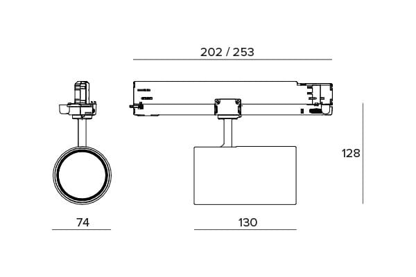 Ligne coordonnée de projecteurs pour le montage sur rail, étudiée pour l'éclairage d'intérieur ainsi que pour le secteur du Retail et de l'hôtellerie.