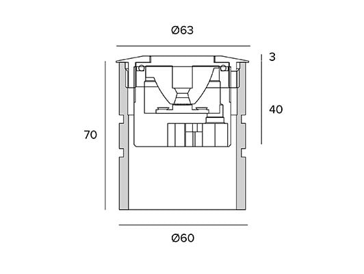 hauteur/profondeur d'encastrement - 70 mm
