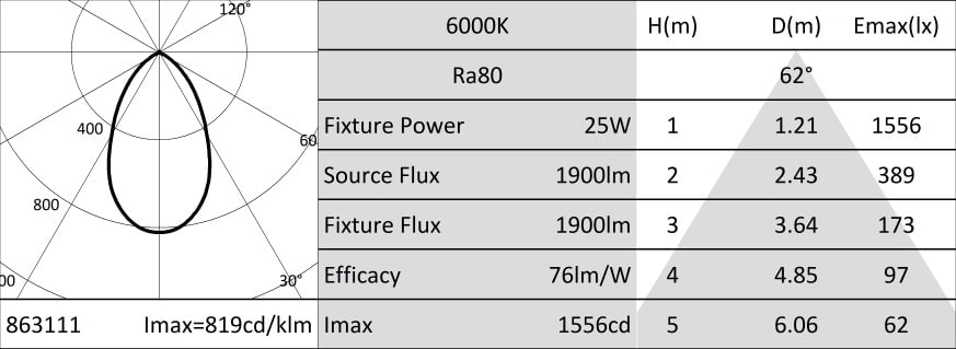 LESELI REFLECT 8" 25W 220-240V 70° 6000K
