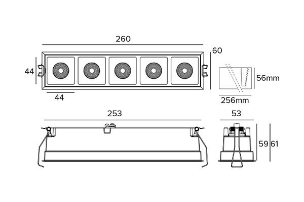 Targetti - OZ LARGE 5X REC 30W Ra90 27K AM BL DA - 1T8858DA