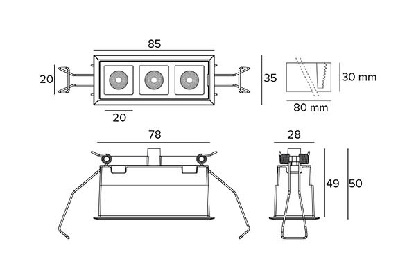 Targetti - OZ SMALL 3X REC 5,2W Ra90 27K ELL BL - 1T8986