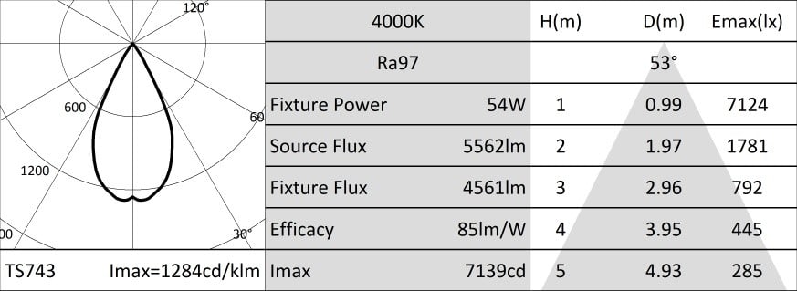 faible éblouissement selon EN 12464-1 (UGR Inf. à 19):