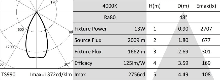 faible éblouissement selon EN 12464-1 (UGR Inf. à 19):