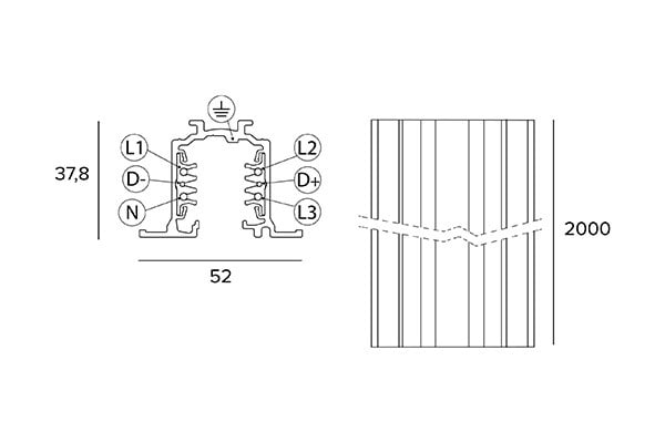 RECESSED EL/DALI TRACK 2000mm ALUMINIUM