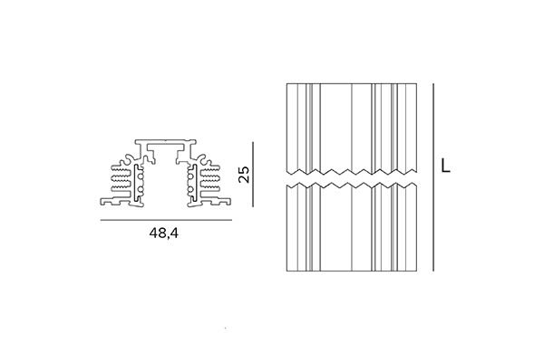 Système à 48 V à monter au plafond et en suspension, encastrement profond ou encastrement simple avec finition trimless, aussi bien au plafond qu'au mur. Il peut-être accessoirisé, à n'importe quel endroit du rail, d'appareils pour une lumière linéaire et ponctuelle grâce à un système simple de fixation mécanique. La profondeur des rails est extrêmement réduite : 25mm ou 53mm. La profondeur du nouveau rail - avec section en "H" - est de 29 mm.