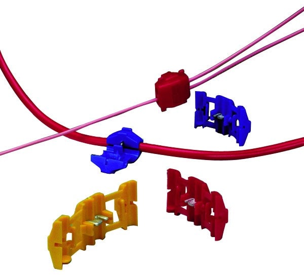 Les Electro-Tap AMP de TE sont des connecteurs de dérivation isolés et autodénudants. La couleur Rouge (0,5-0,9mm²), Bleue (1-2,5mm²) ou Jaune (4-6mm²) du boîtier en nylon permet de choisir rapidement et sans risque le produit selon la section des fils à raccorder. La mise en œuvre se fait simplement en refermant le boîtier avec une simple pince plate, sans dénudage ni coupe des conducteurs mono ou multibrins.