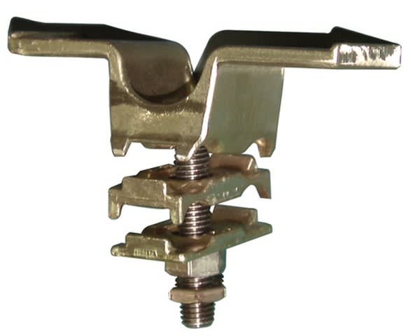 STDA2 75-116-Sabot de terre double à deux ailettes-Sections: S1 et S2: 75 à 116mm² (diamètres 11,2 à 14mm)-Serrage et fixation par boulon M12 (livré sans plaque bimétal)