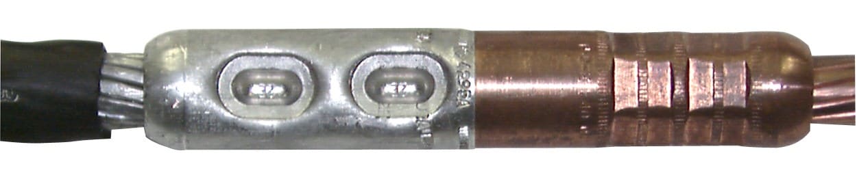 Les manchons alu-cuivre XN87BM -Simel de TE- sont destinés au raccordement BT ou HTA d'un câble en aluminium avec un câble en cuivre.Le sertissage se fait par poinçonnage profond étagé (matrices 18 ou 28 MBM... + poinçon 18 ou 28 PE...) pour la partie en alu et en rétreint hexagonal pour la partie cuivreIls sont livrés avec du compound isolant destiné à remplir les empreintes de poinçonnage après sertissage.