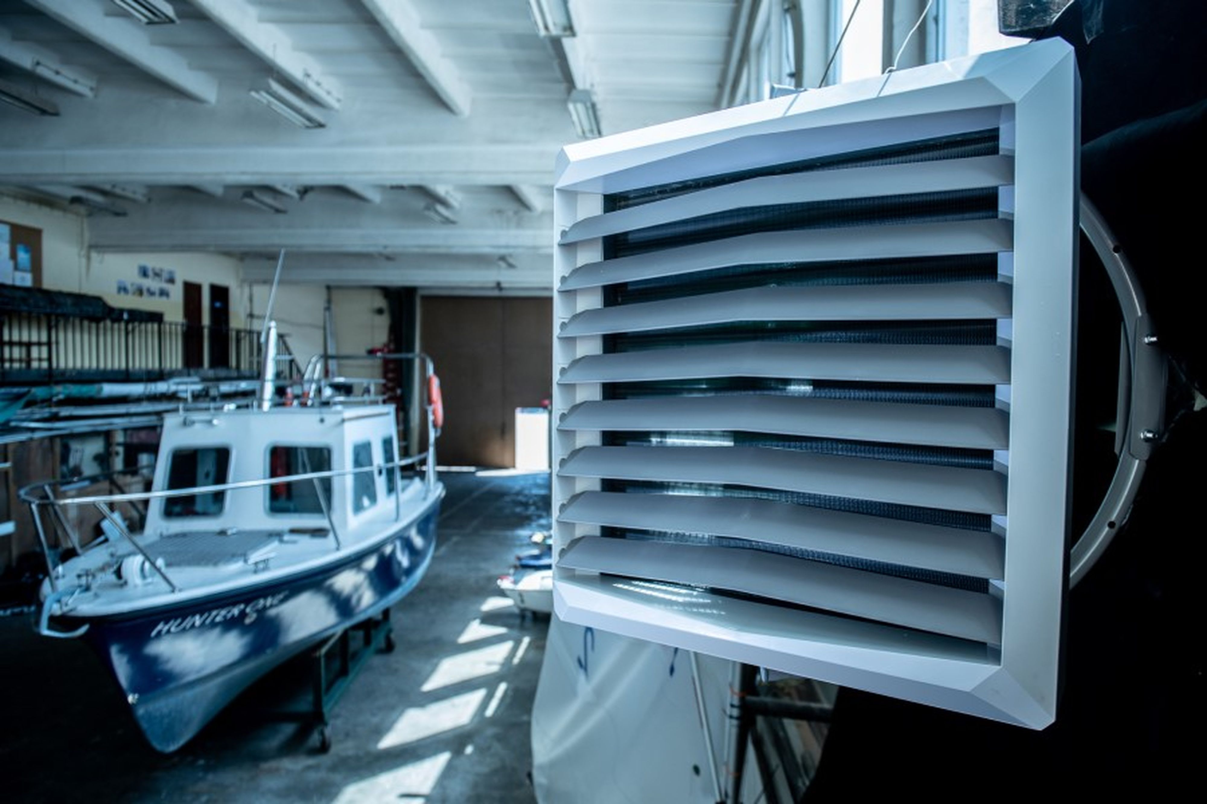 L’aérotherme eau réversible ONSEN-75 est fourni de série avec son diffuseur directionnel réglable longue portée.
