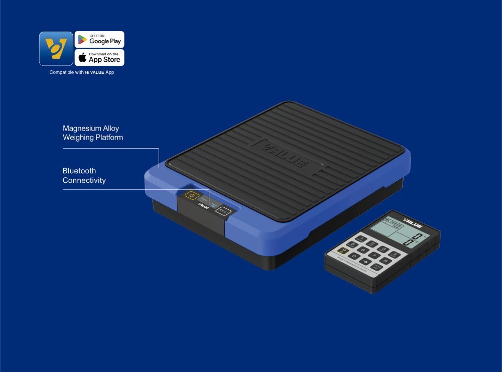 · Connexion aux appareils mobiles via Bluetooth à l'aide de l'application Hi VALUE. · Contrôle du transfert de gaz de précision avec réponse rapide et faible latence. · Plateau de pesée en alliage de magnésium avec un design léger. · Poignée intégrée pour une utilisation facile d'une seule main. · Conception résistante aux chocs garantissant une fiabilité élevée. · Le fonctionnement synchronisé avec l'application Hi VALUE et l'électrovanne intelligente TF-VSV1 permet une gestion en boucle fermée du chargement du réfrigérant. Alarme sonore lorsque la quantité préréglée est atteinte Mesure précise de la masse de gaz & affichage instantané sur écran LCD sans fil Double fonction : charge & récupération Balance antichoc