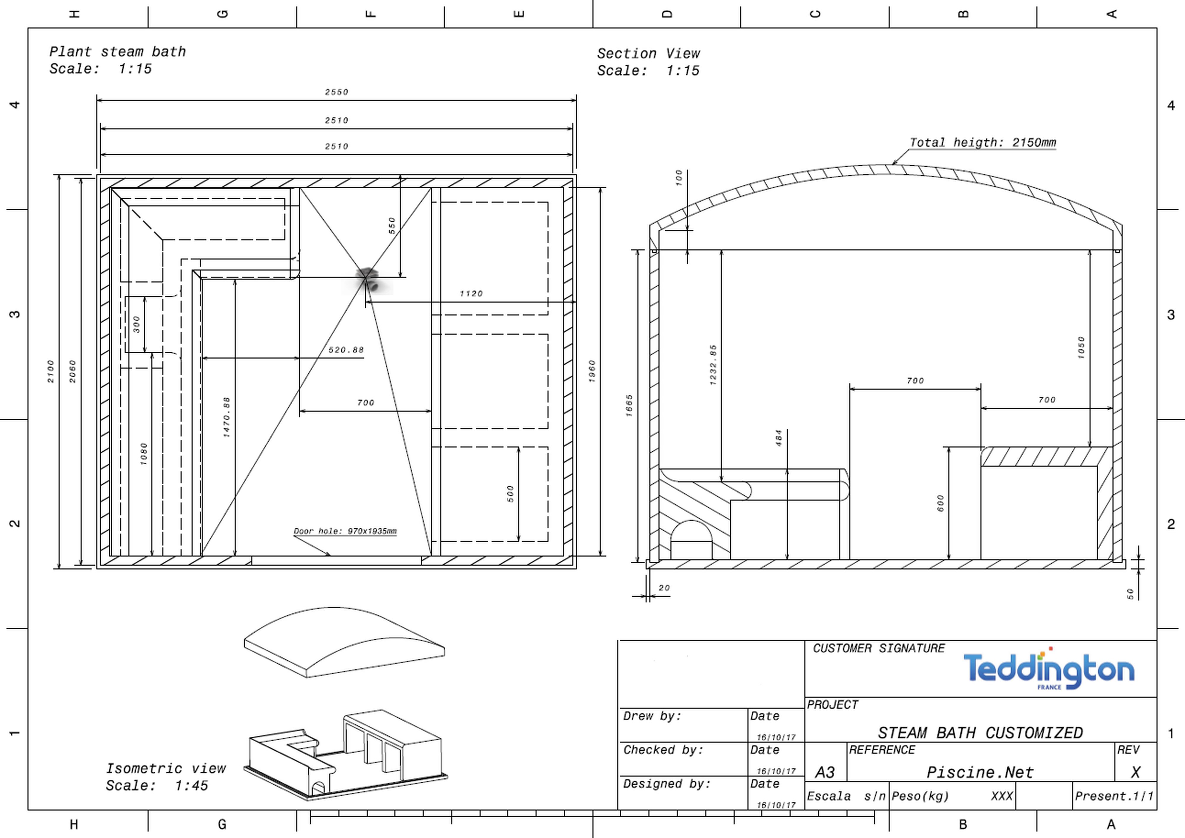 Cabine hammam sur-mesure 11 m3 prête à carreler en panneaux de 80 mm - TEDDINGTON